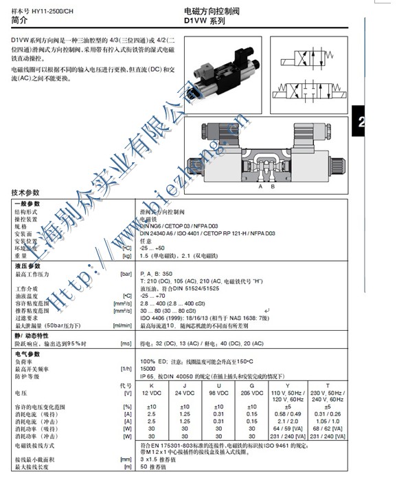 Parker电磁方向控制阀D1VW系列